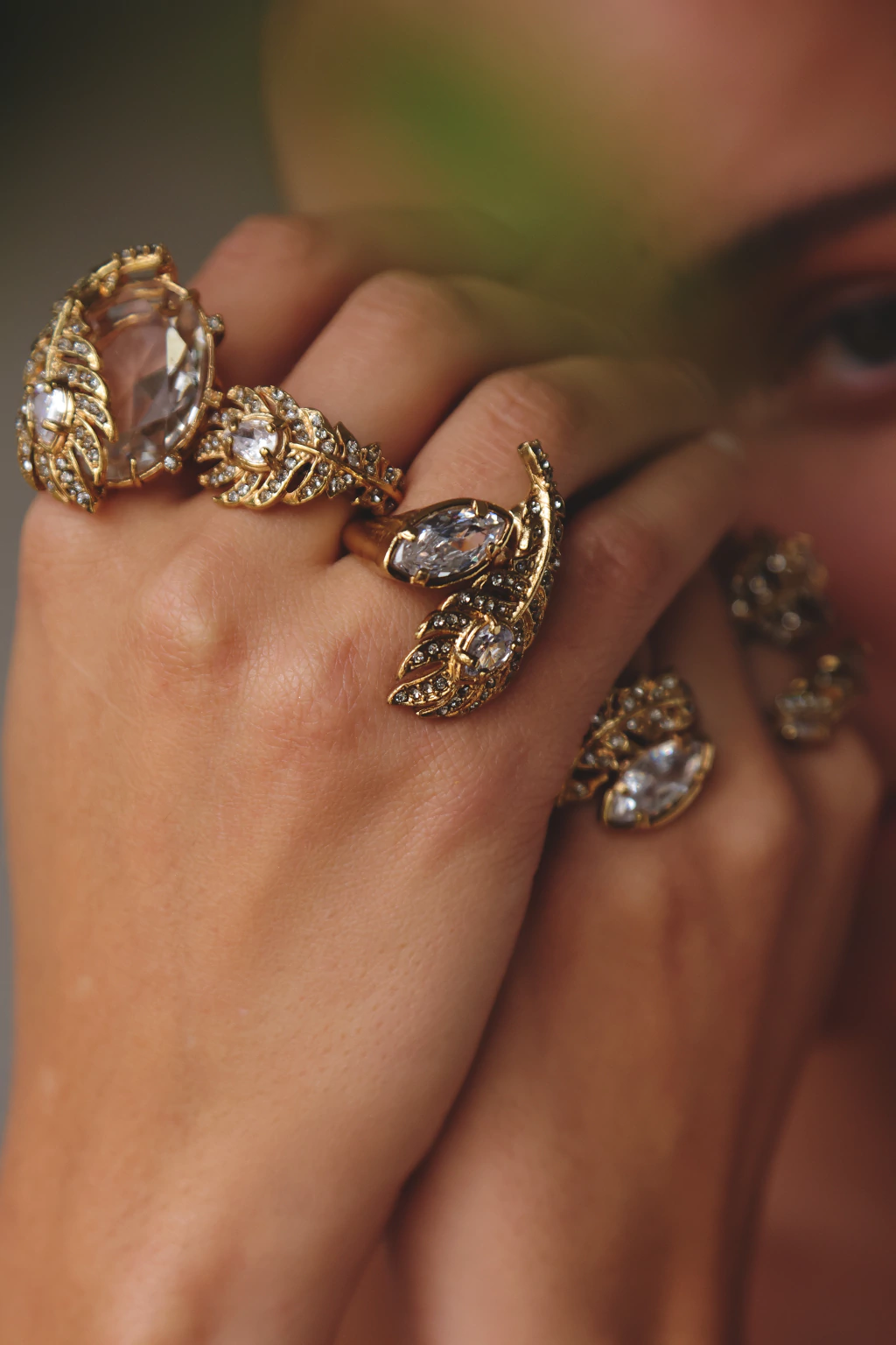 Cada peça dessa coleção foi pensada para não apenas embelezar, mas para envolver quem a usa em um toque de sofisticação discreta, como um segredoguardado entre os dedos. Os brincos e colares, com suas formas fluídas e leves,evocam o movimento das penas ao vento, enquanto os anéis trazem umaexplosão de brilho, como se cada pedra fosse uma estrela a brilhar em seu própriocéu.